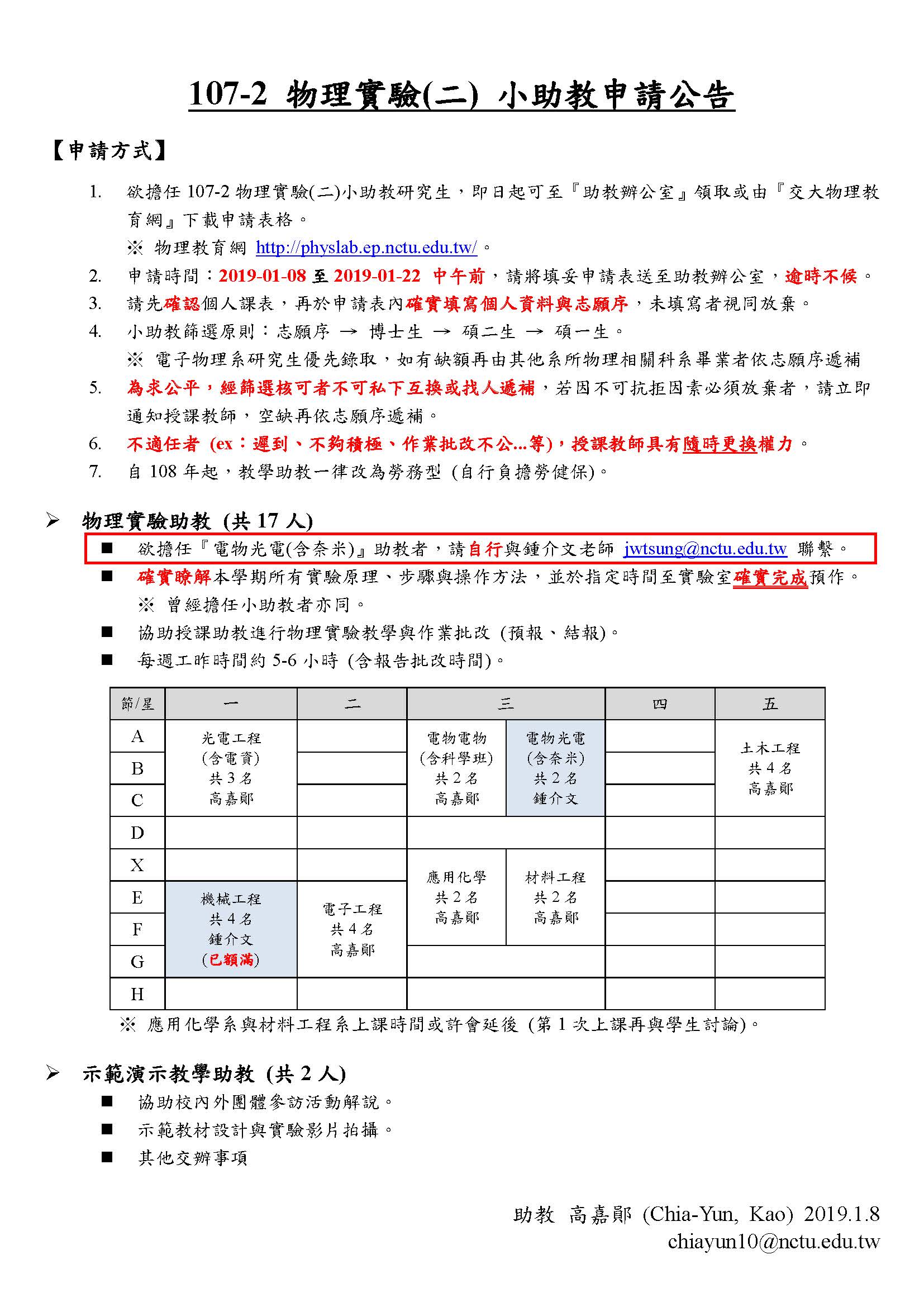 107-2 物理實驗小助教申請