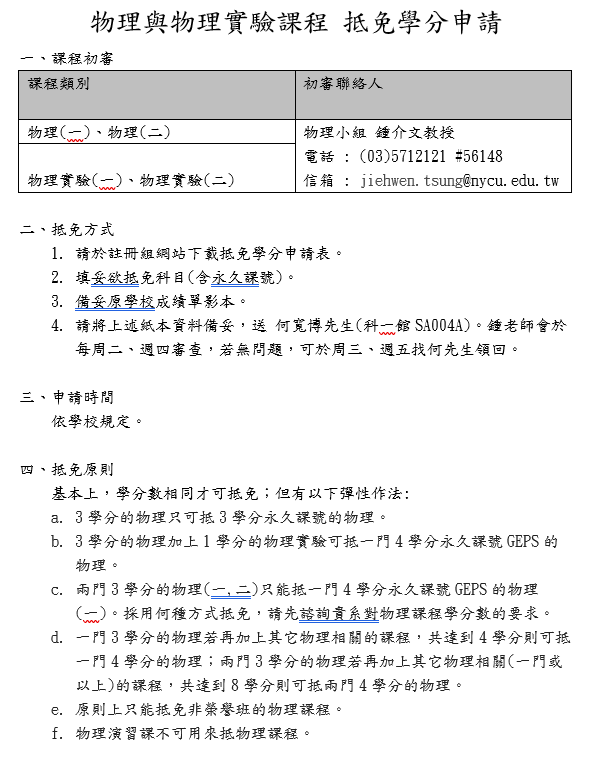 抵免學分申請